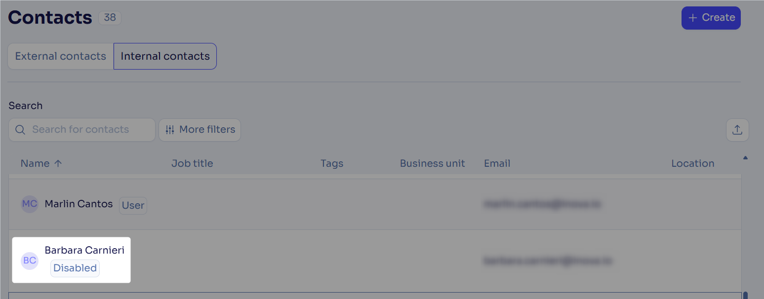 Map internal contacts to both active and disabled user accounts on the Administration page and display a clear Disabled chip to help you identify them instantly.
